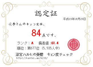 ついでに、キョン度チェックなんてのも発見したのでやってみたw
